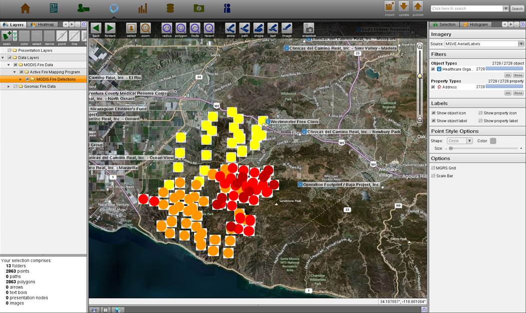 Direct Relief is monitoring the latest fire activity in relation to its partner network using Palantir software (pictured below).