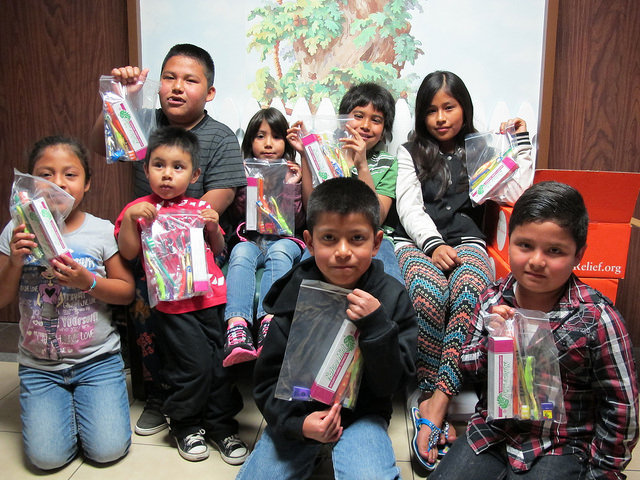 Each family also takes home a dental hygiene kit containing toothbrushes, toothpaste, and floss, which were donated by many health care manufacturers to Direct Relief and packed by local volunteers.