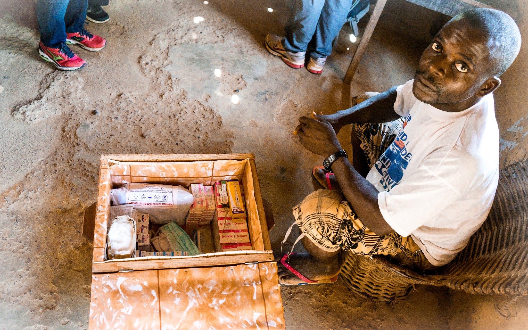 Moses’ supervisor, Markson, traveled with us that day.  Taking careful notes first on paper, then on a mobile app (a project Last Mile is piloting to digitize and simplify data collection), Markson asked Moses to tell him what had taken place since he last visited: any births? deaths? people coming or going? did he treat any one for pneumonia? malaria? how many referrals had he made and to what health facilities?  Markson took stock of the town’s supply of basic medicine–a locked box Moses kept in his home–and made sure that Moses knew how to properly measure and administer the liquid amoxicillin (different than the capsules he received before).