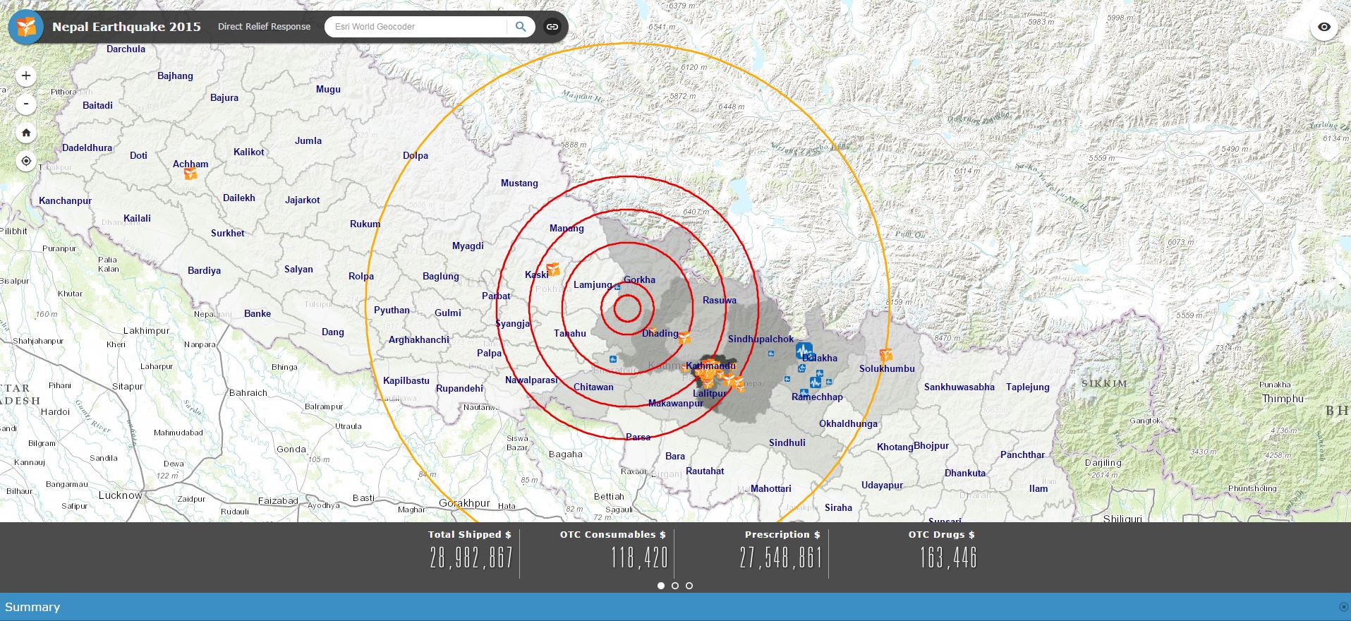 All medical donations to Nepal are tracked and visible on Direct Relief’s Nepal Relief Aid Map. The values for medical aid donations are tracked, calculated on a daily basis, and displayed on the map. This means that the value will increase to reflect each additional shipment of medical aid into Nepal.