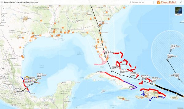 Click on the map above to track Hurricanes Irma and Jose, as well the sites where Direct Relief has prepositioned emergency medical material in anticipation of health risks and disruption to healthcare supply lines in a hurricane emergency. The map updates automatically with a live feed from NOAA.
