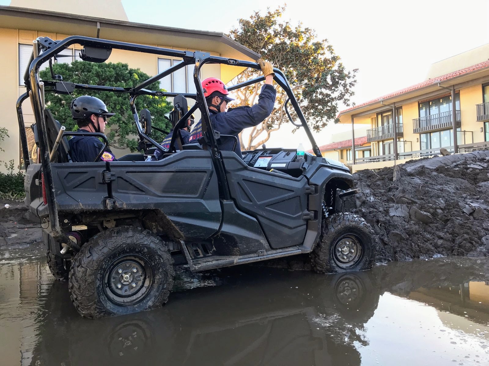 Search and Rescue Crews Drive Through Montecito on a Ruggedized Utility Vehicle Donated by Direct Relief.