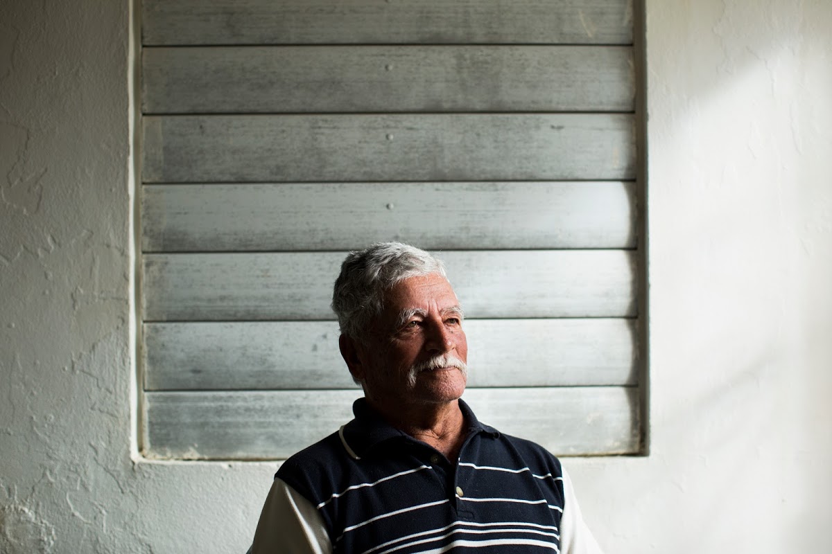 Andrés Rodríguez Rodríguez en su hogar, en la comunidad Bauta Abajo, en Orocovis, Puerto Rico. Bauta Abajo no tiene electricidad desde hace más de siete meses, cuando el huracán Irma impactó la isla dejando a residentes sin fuentes de agua potable. El puertorriqueño supervisa el mantenimiento de dos bombas de agua que benefician a alrededor de 300 hogares. Las bombas son energizadas por un sistema de energía solar instalado recientemente, financiado por Direct Relief y coordinado por el grupo Por Los Nuestros. (Foto por Erika P. Rodríguez para Direct Relief)