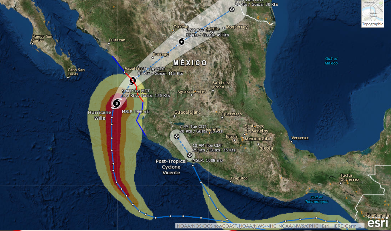 Hurricane Willa weakened overnight to a Category 3 storm, but the hurricane could still bring devastating storm surge, wind and rain to Mexico’s Pacific Coast, according to the U.S. National Hurricane Center.  The storm is expected to make landfall south of Mazatlan on Tuesday evening, and evacuations have been taking place in low-lying areas of Sinaloa state to protect residents from potential flooding.