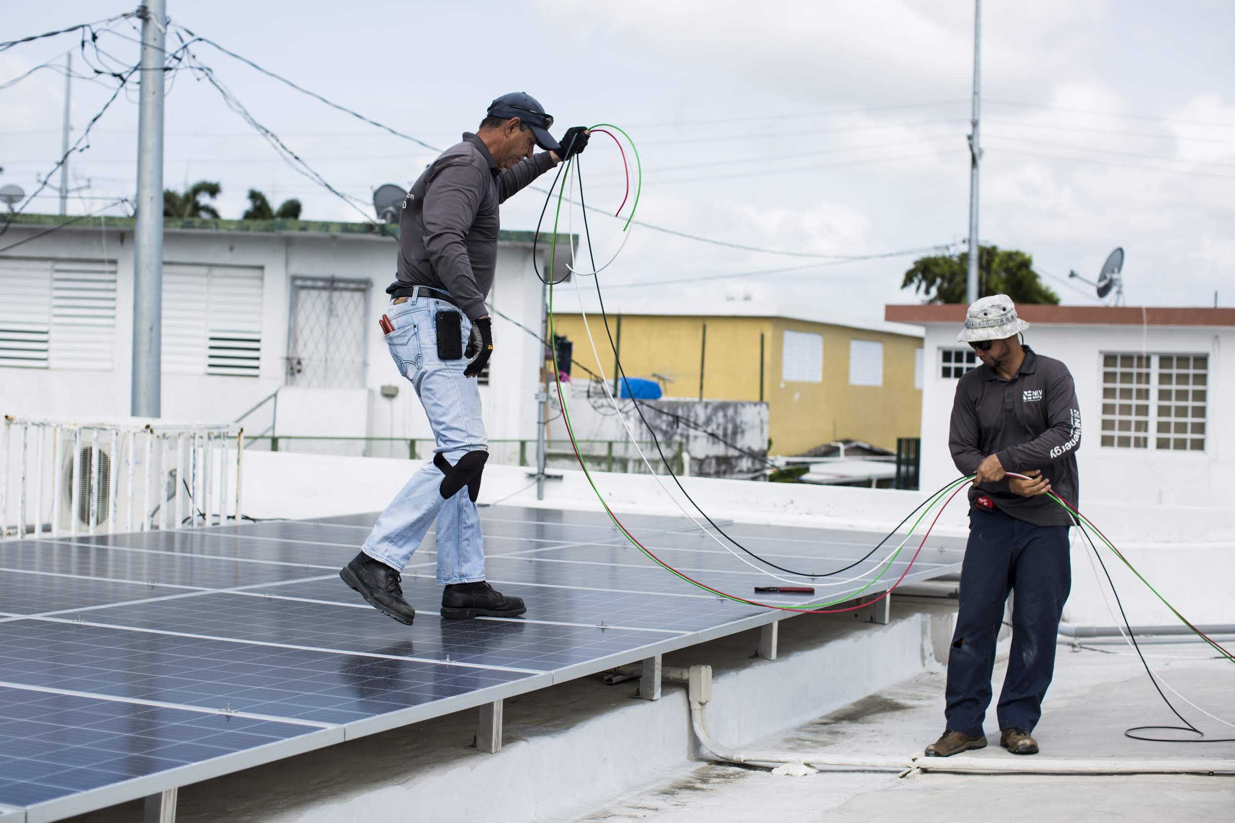 A solar power system is installed at Clínica Iella in San Juan, P.R., on July 5, 2018. The new solar system, funded by Direct Relief, will allow the clinic to sustain services during a power interruption. (Erika P. Rodriguez/Direct Relief)