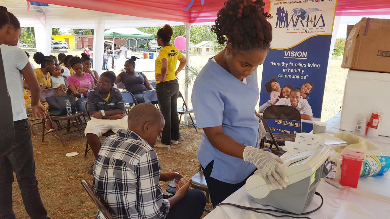 A support group at Cornwall Regional Hospital in Kingston, Jamaica, where blood glucose tests were administered to children. The test’s reagents, which allow a chemical analysis of a patient’s blood, were delivered by Direct Relief in conjunction with the Jamaica Diabetes Association and the Life for a Child Program. (Photo courtesy of the Jamaica Diabetes Association)