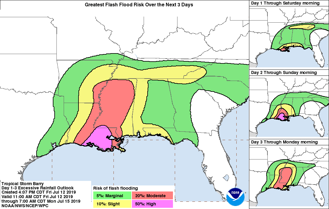 Nevertheless, the Lower Ninth Ward, New Orleans and southeast Louisiana are all at risk for serious flooding when Barry hits. Forecasters expect up to 20 inches of rain to drench coastal Louisiana by Sunday, accompanied by storm surges and falling on a Mississippi River that is already 16 feet above sea level, compared to three feet above flood stage when Katrina hit.