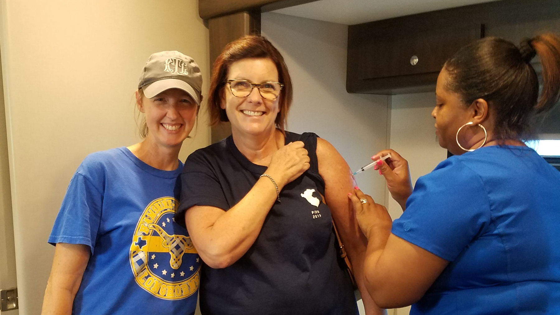 County health proivders give a tetanus shot in their mobile unit.(Photo Courtesy of Jefferson County, Texas Public Health Department)