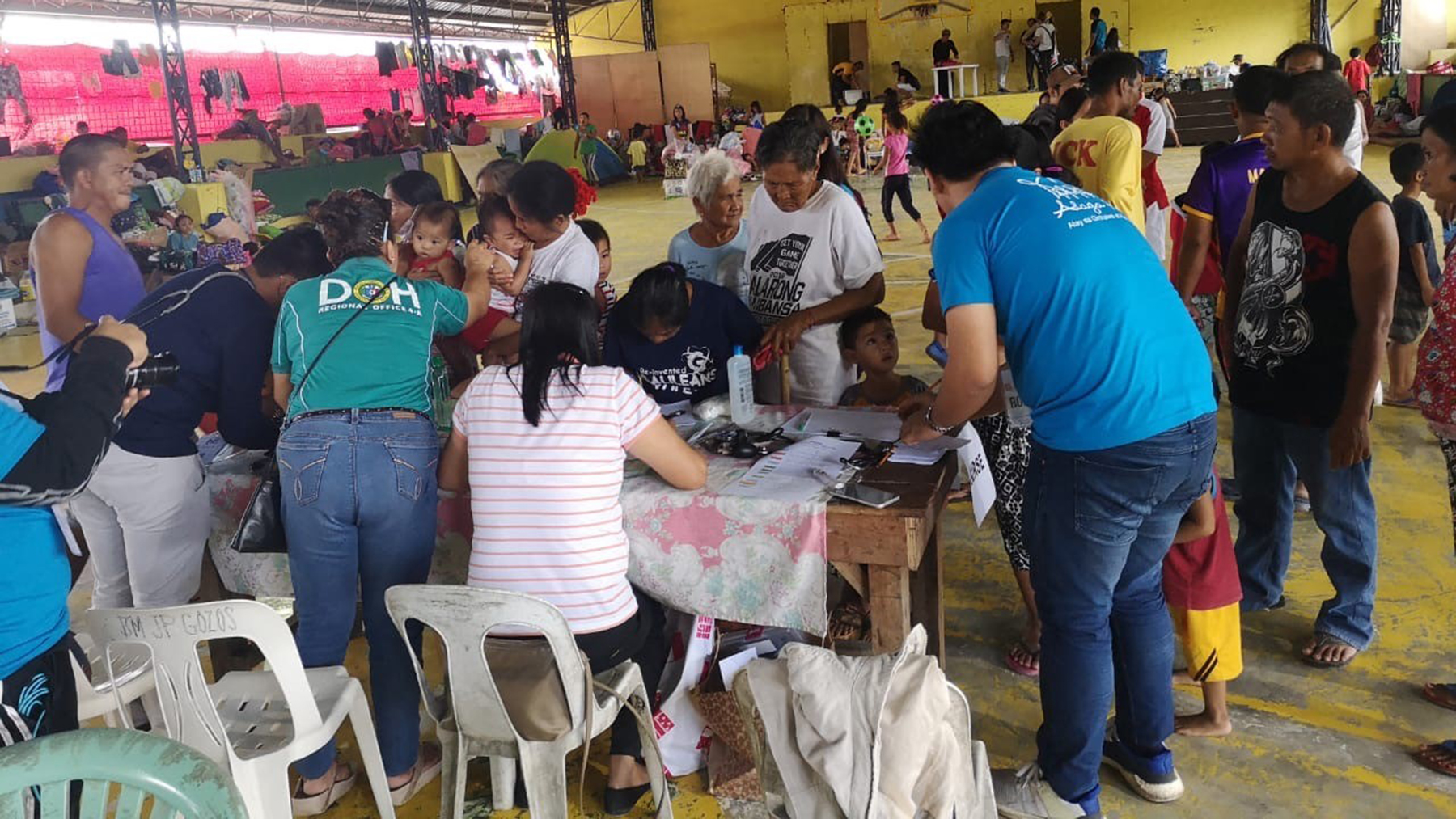 Health care workers check in people seeking medical care at an evacuation center in the barangay of Banaba, Philippines. (Photo courtesy of Rebecca Galvez Tan)