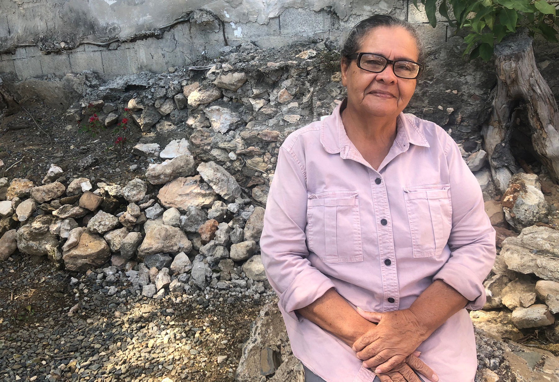 Minerva Rodriguez, a pastor in Yauco, Puerto Rico, sits in front of her church that was damaged during recent earthquakes on the island. Rodriguez was one of the community leaders that helped establish outdoor communities as aftershocks continued. (Photo by Alejandra Rosa Morales for Direct Relief)