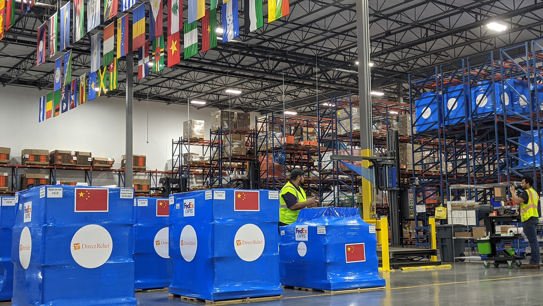 Direct Relief staff members prepare a shipment of personal protective equipment, bound for Wenzhou. (Tony Morain/Direct Relief)