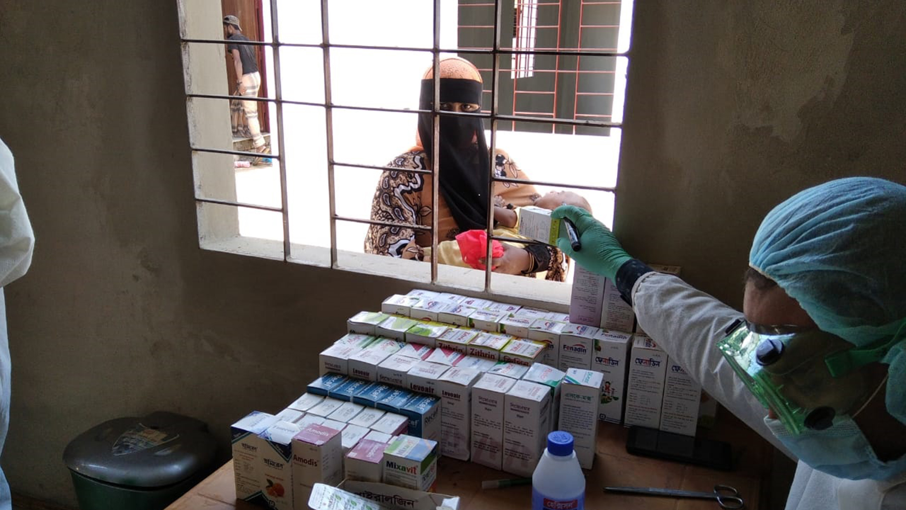 A health worker passes medication to a patient. (Photo courtesy of Iftikher Mahmood)