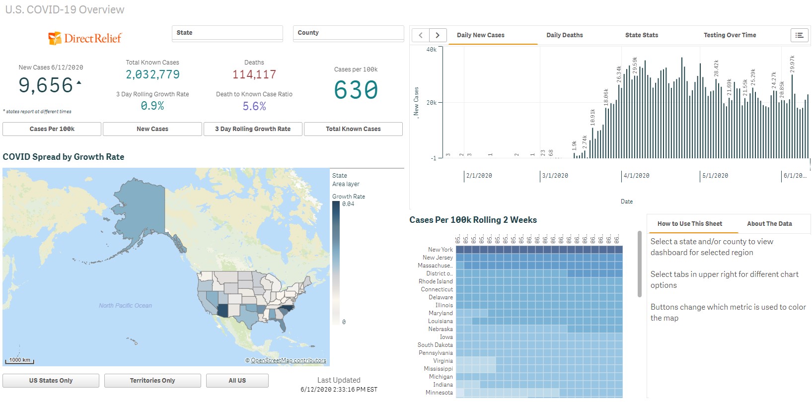 Click the above image to explore Direct Relief's Covid-19 dashboard .