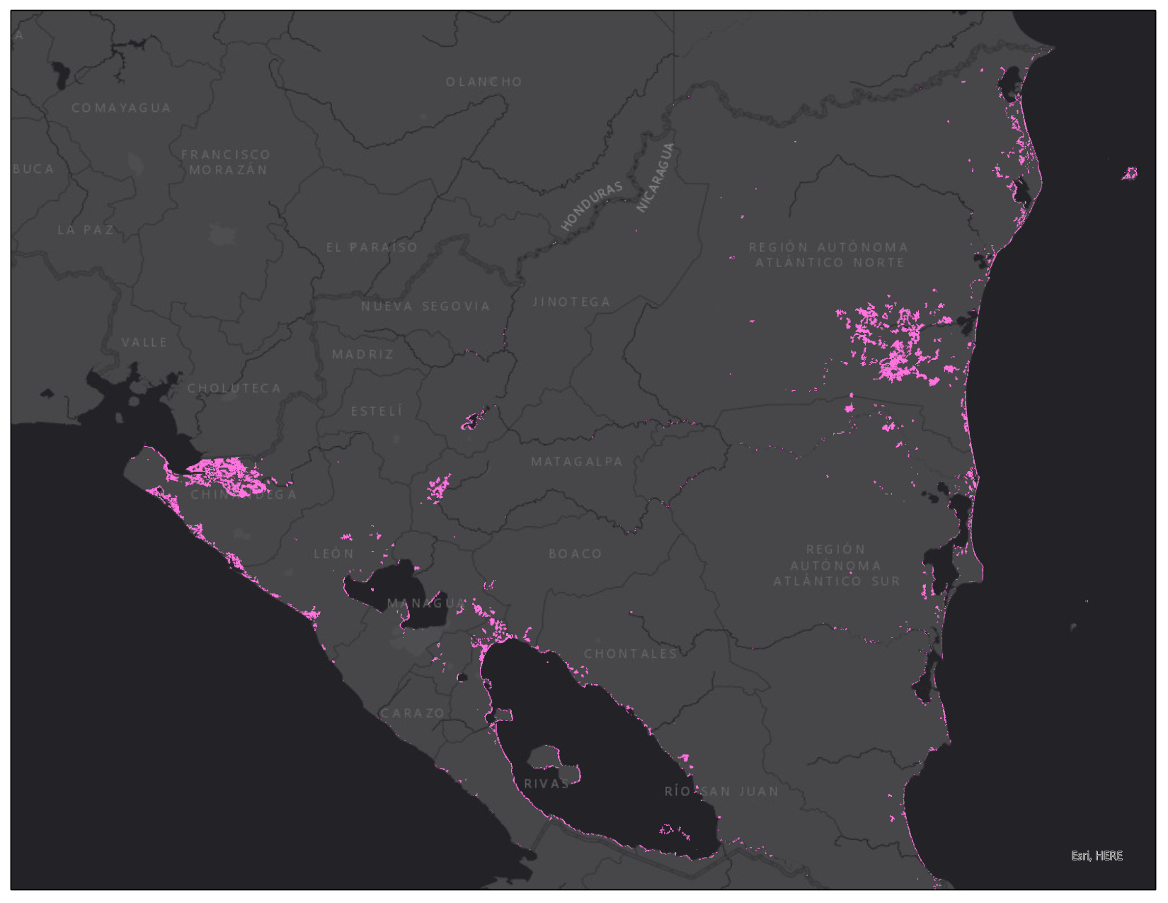 Map showing areas of flooding in Nicaragua after Hurricane Iota. (Direct Relief)