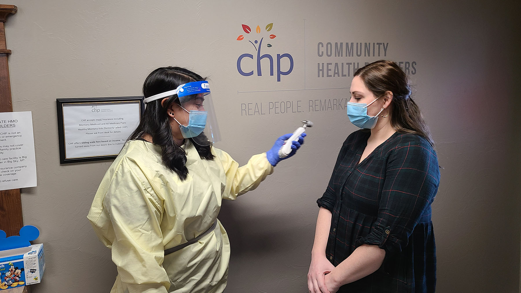 A clinician checks a patient’s temperature at the West Yellowstone clinic. (Photo courtesy of CHP)