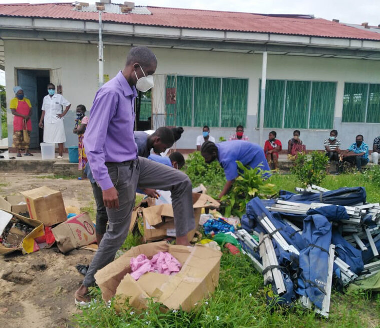 Nhaconjo Health Center workers clean up damage wrought by Cyclone Eloise in Beira (Photo courtesy of HAI)