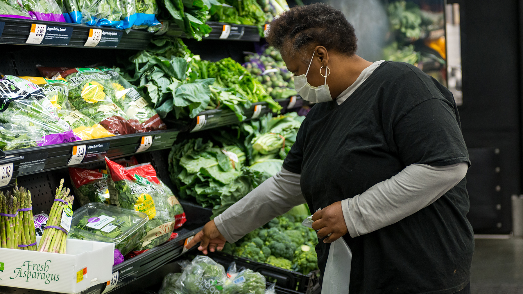 A participant in A Healthier You shops as part of a monthly event, at which participants get a stipend and help with picking out healthy and cost-effective groceries, on November 24, 2020.(Photo By Revere Photography for Direct Relief)