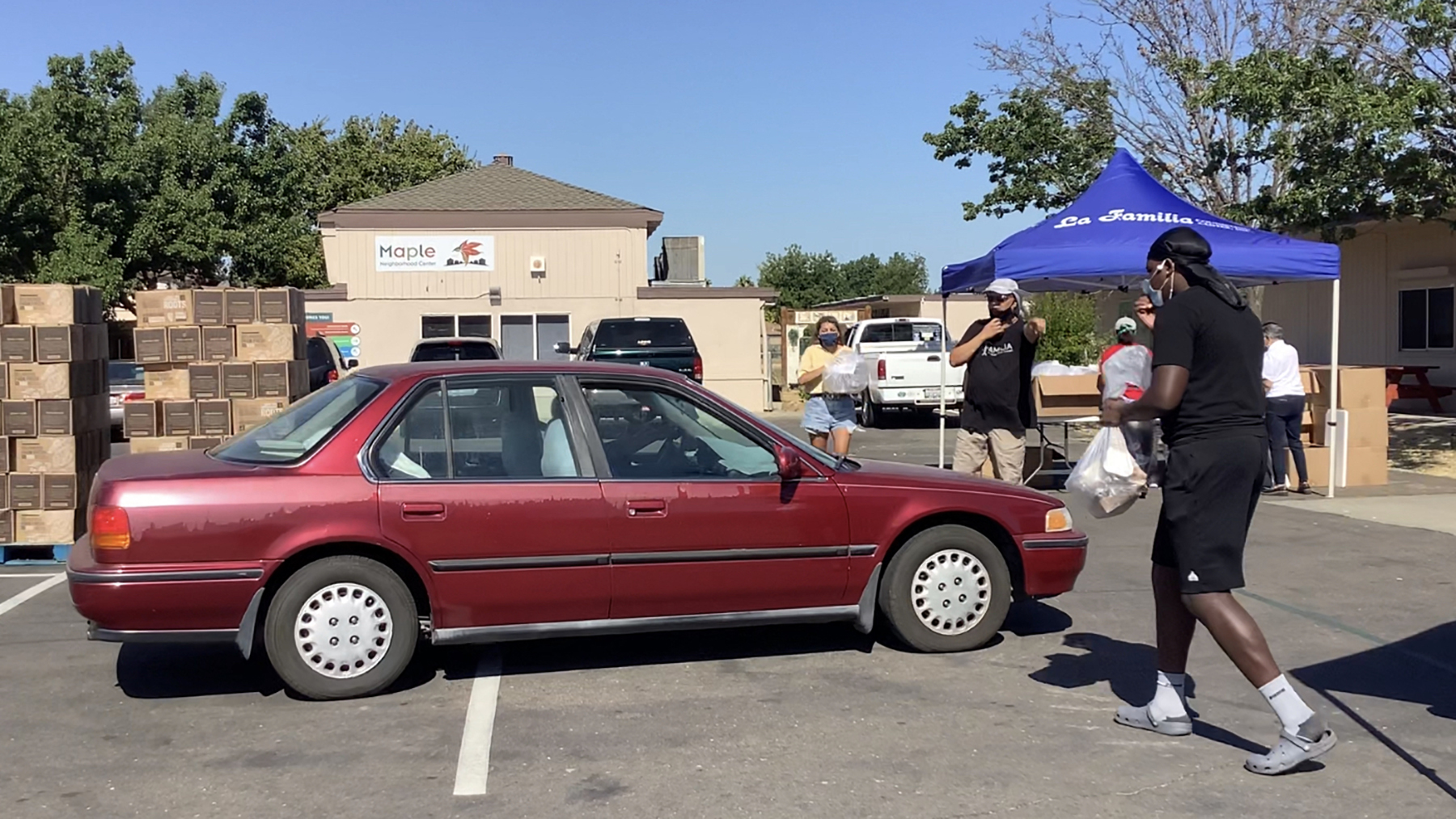 A food distribution drive at La Familia Counseling Center in Sacramento, California. In addition to providing mental health services, the center serves as a resource hub for families in the community. (Photo courtesy of