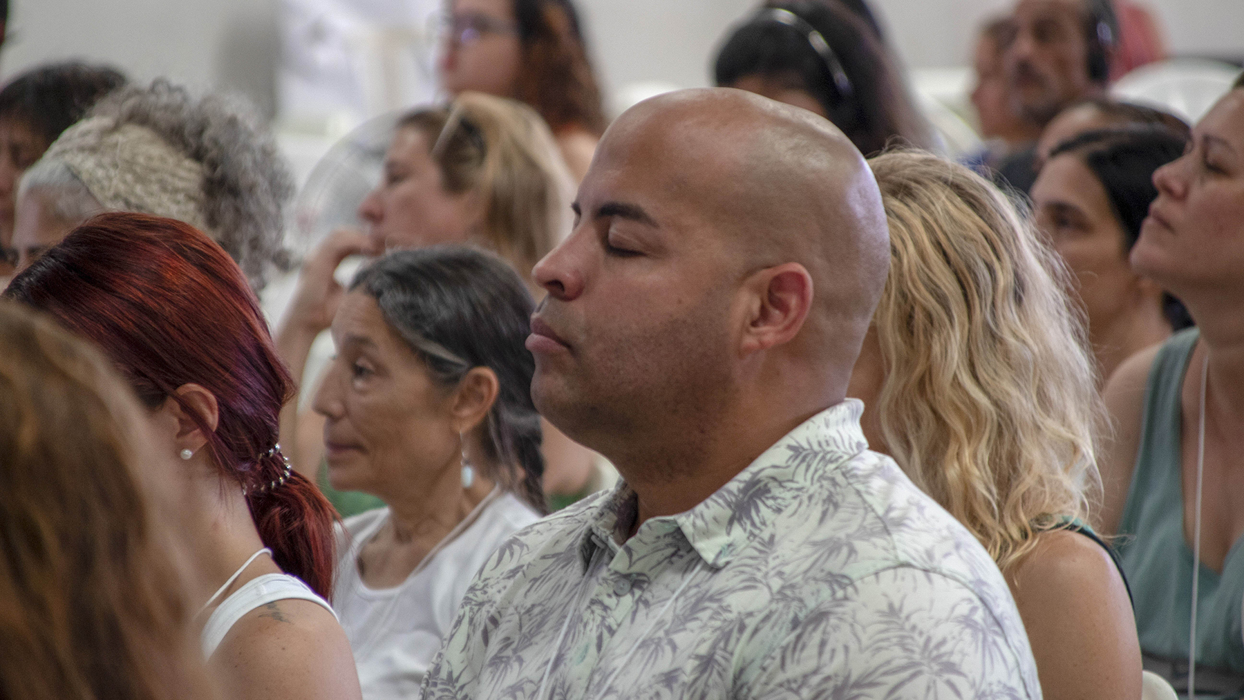 Una sesion de meditación concentrativa en un entorno de un grupo grande. La foto fue tomada antes de la pandemia. (Foto cortesía del Centro de Medicina de la Mente y el Cuerpo)