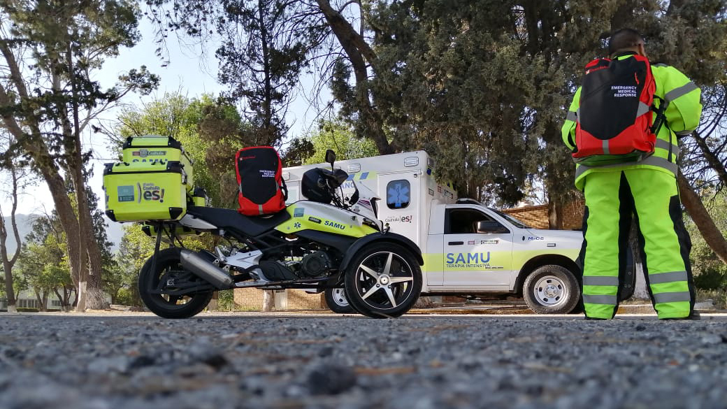 First responders in Coahuila, Mexico, treated patients with Direct Relief-provided Emergency Medical Backpacks this week. These backpacks, containing first aid essentials, were delivered to Coahuila’s Ministry of Health last week in response to local wildfires. They are now also being used to support paramedics working at vaccination campaigns and providing auxiliary supplies in support of their moto-ambulance units. (Photos courtesy of SAMUCoahuila)