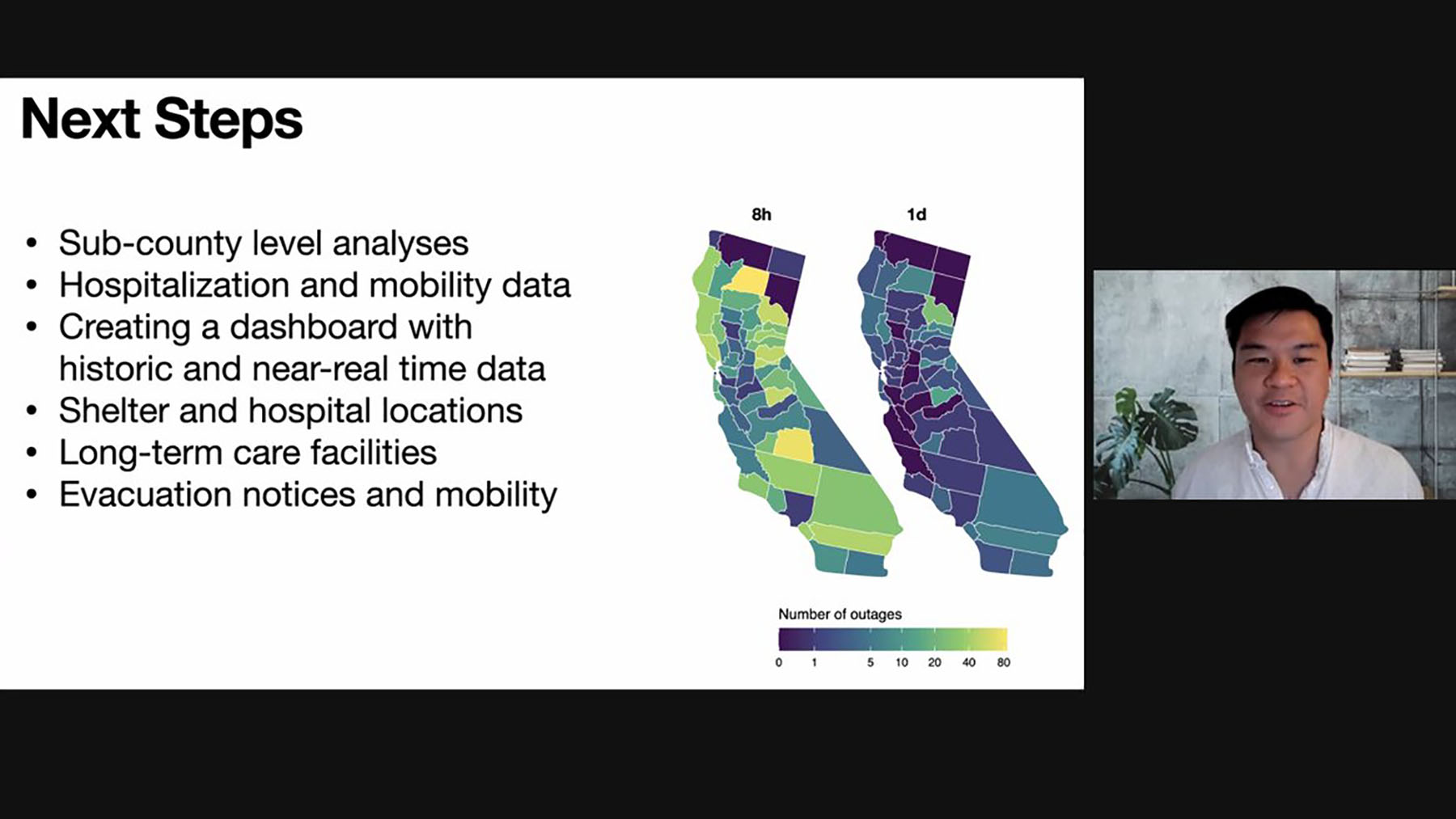 Those who are medically vulnerable are also disproportionately affected by public-safety power shut-offs, which have become a characteristic feature of the California wildfire season. “There were nearly 1,100 eight-hour events in 2019,” said panelist Dr. Mathew Kiang, a professor of Epidemiology and Public Health at Stanford University. “So these are fairly common and they can impact quite a few people,” he explained.