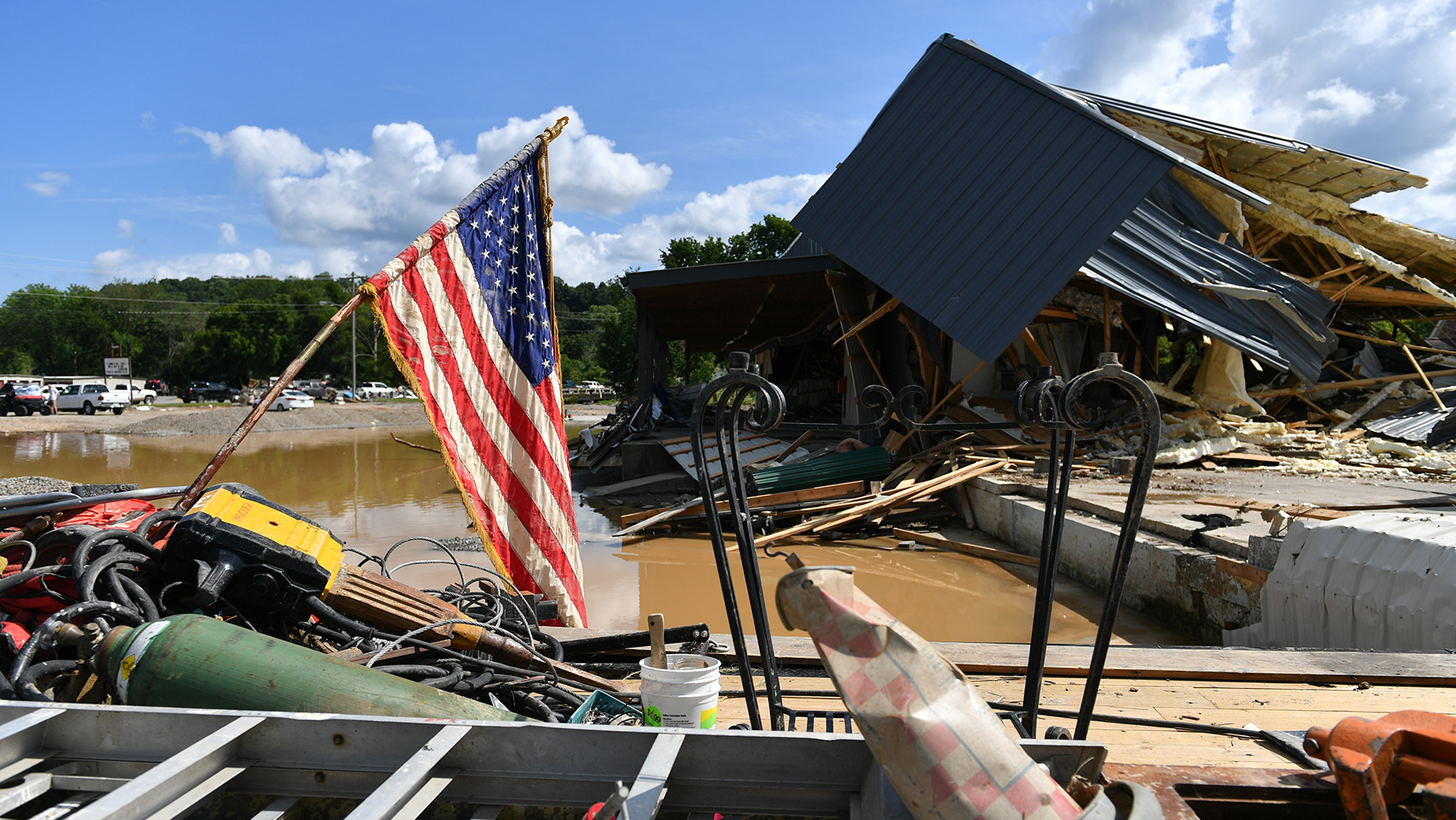 Damage was extensive from heavy rains and devastating floods in Waverly, Tennessee, as seen on Aug. 22, 2021. (Photo by Peter Zay/Anadolu Agency via Getty Images)