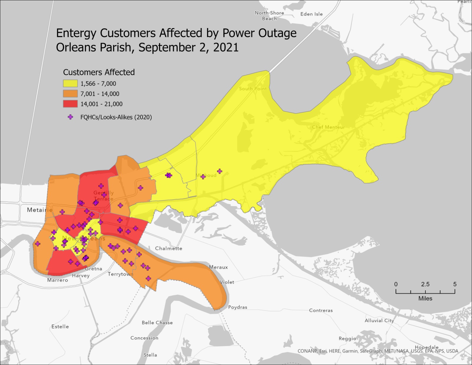 CrisisReady, a research partnership between Direct Relief and Harvard T.H. Chan School of Public Health, has been working on gaining a better understanding of how the power outages are impacting the area’s most vulnerable residents. Their most recent analysis shows that there are 19 counties in Louisiana with a 50% or greater customer outage rate, based on data from Entergy. That area contains 212 Federally Qualified Health Center sites that serve 215,208 patients. Of these, almost 17,000 patients are over 65 years old, 41,225 are uninsured, and about 20,000 have diabetes.