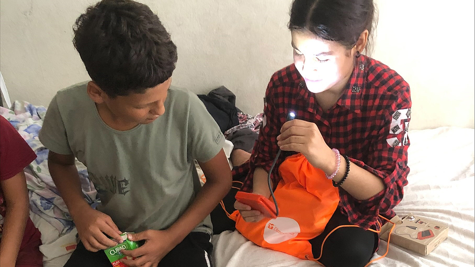 Children newly arrived to Turkey from Afghanistan receive hygiene kits from Direct Relief, delivered via Reach Out Worldwide, which was also using Emergency Medical Backpacks to provide triage care in Turkey. (Reach Out Worldwide photo)