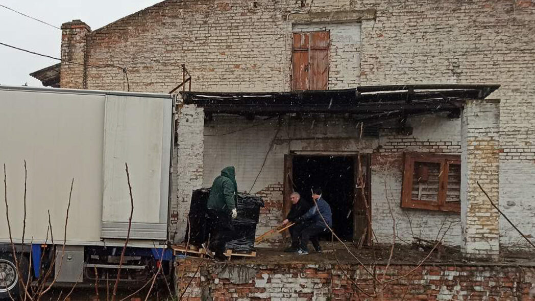 Charity Fund Modern Village and Town volunteer unload a truck with medications to the charity’s storage facility (Photo courtesy of Charity Fund Modern Village and Town)