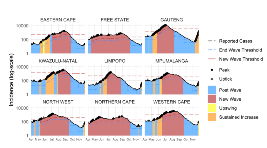 South African epidemiologists have placed all states at the status of “increased local monitoring,” which in previous waves led to subsequently high peaks: