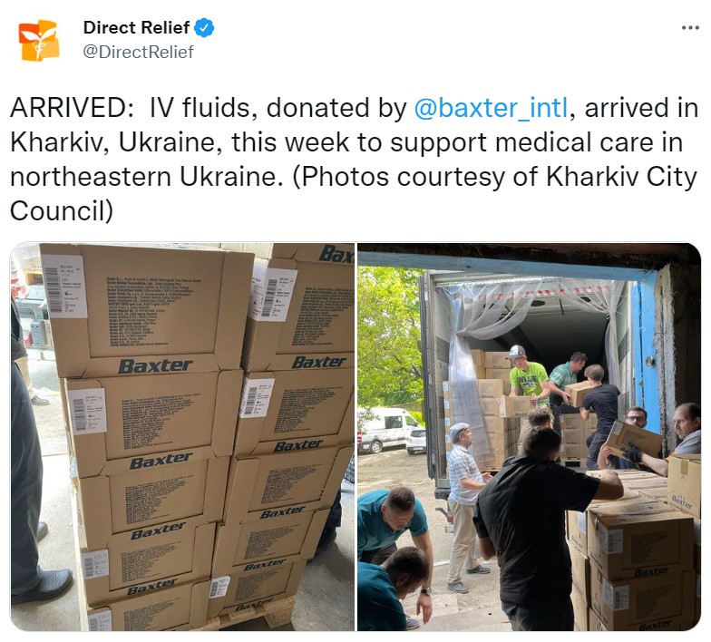 IV fluids, donated by Baxter International, arrived in Kharkiv, Ukraine, this week to support medical care in northeastern Ukraine. The shipment was deployed from the company’s facilities in Europe and is the first of several donations, including large shipments en route to support patients managing kidney conditions in Ukraine.