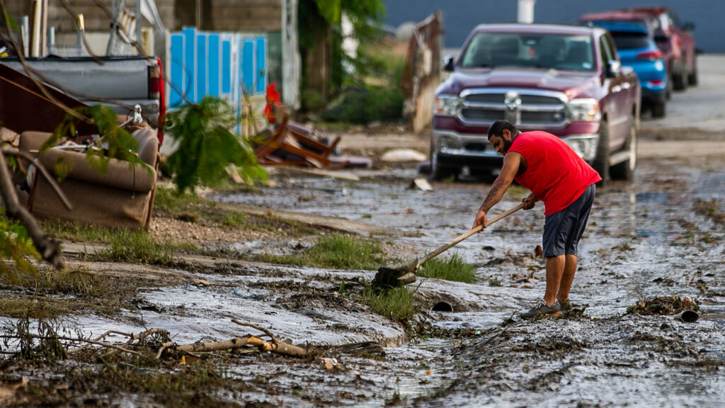 A resident in Salinas, Puerto Rico, on Sept. 21, 2022, in the aftermath of Hurricane Fiona. (Xavier Garcia/Direct Relief)