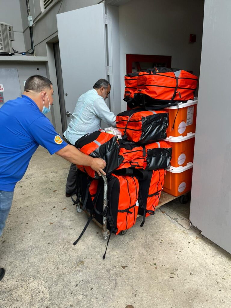 Direct Relief staff in Puerto Rico distribute emergency medical backpacks and relief kits to those impacted by Hurricane Fiona. (Direct Relief photo)