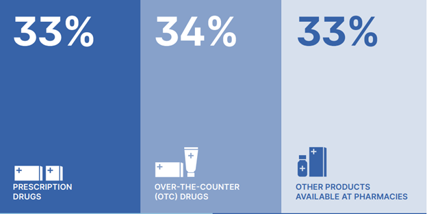 Older patients tended to buy medications for chronic illnesses, with cardiovascular drugs (34%) being the dominating category for men and women aged 55 or older, followed by prescriptions for the digestive system and metabolism (18%).