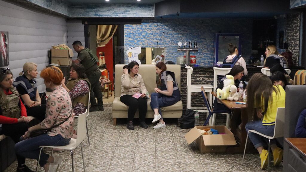 UKRAINE – “You are in a house that is being shelled, I am here, and I will stay with you,” the instructor tells a volunteer simulating shock during a role-play in a basement. In the city outside, two actual shells fired by Russian forces suddenly boom upon impact. Training doesn’t get much more lifelike than this.