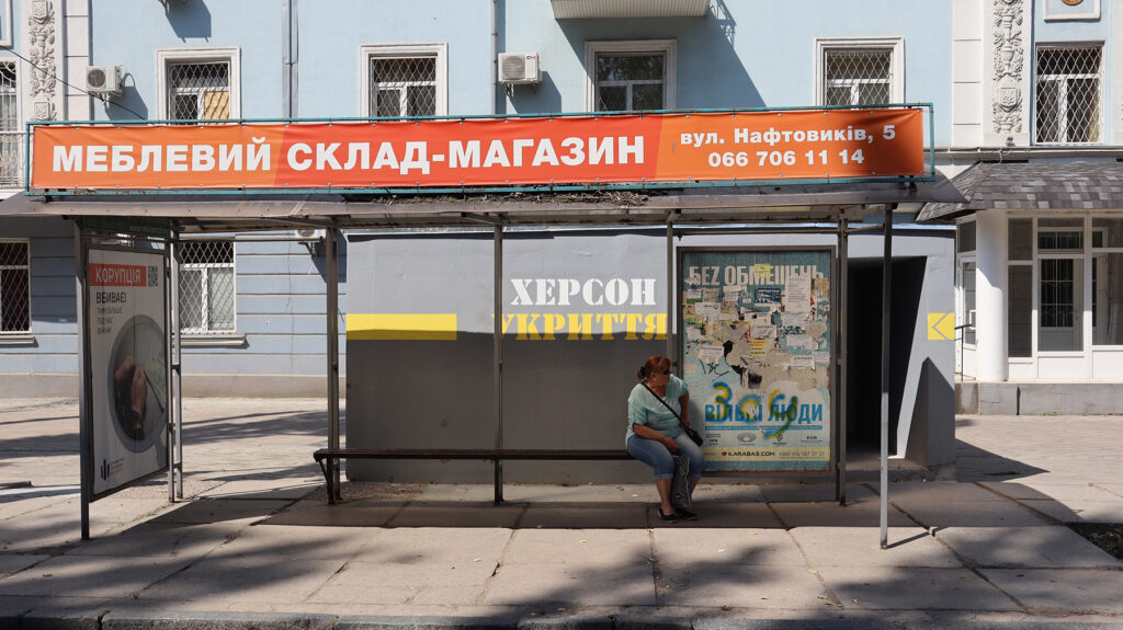 “You get no warning when the shells come in, it happens before you can take cover – even if [a shelter] is right next to you,” said a Kherson resident waiting at bus stop beside a concrete shelter. “They are there more to reassure people,” she added, shrugging off the danger.