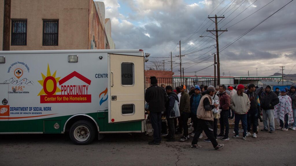 A mobile clinic, funded in part by Direct Relief, serves those in need in the El Paso area in December 2022. Centro San Vicente, a federally qualified health center, runs the mobile clinic and recently received medical aid from Direct Relief. (Photo by Oscar Castillo for Direct Relief)