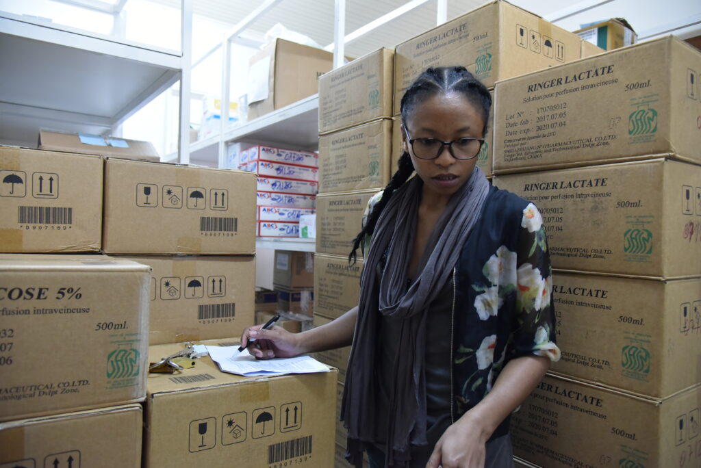 Léa Rahajatiana reviewing hospital inventory (Photo courtesy of Pivot)