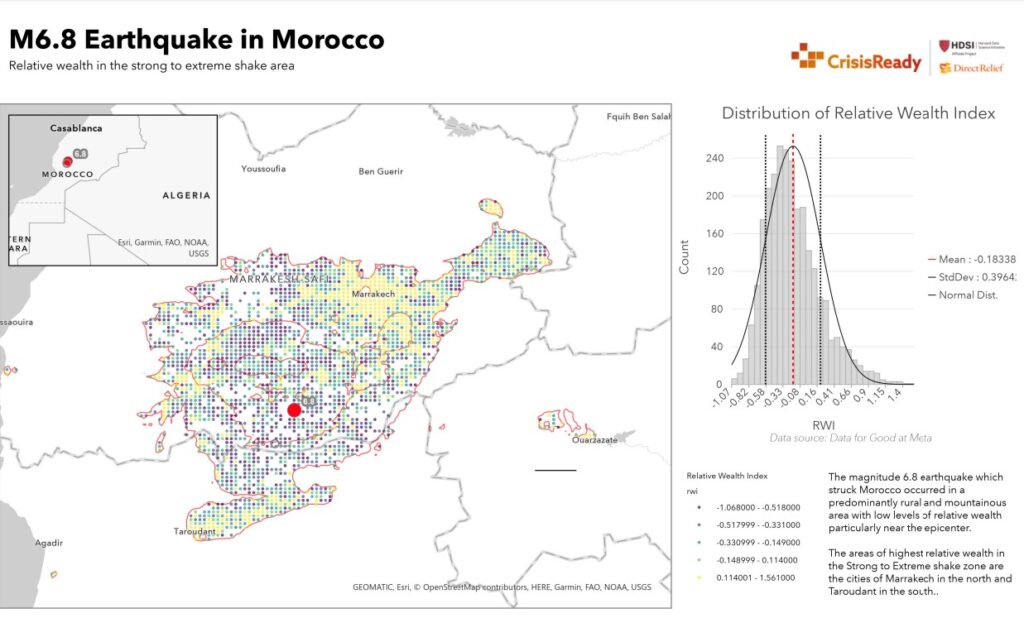 The analysis examined population density, health facility density and relative wealth index via anonymized data from Data for Good via Meta. Crisis Ready has provided maps and information analysis to responding organizations and the European Commission via Meta, and will continue providing insights to inform emergency responders and governments allocating resources to the response.
