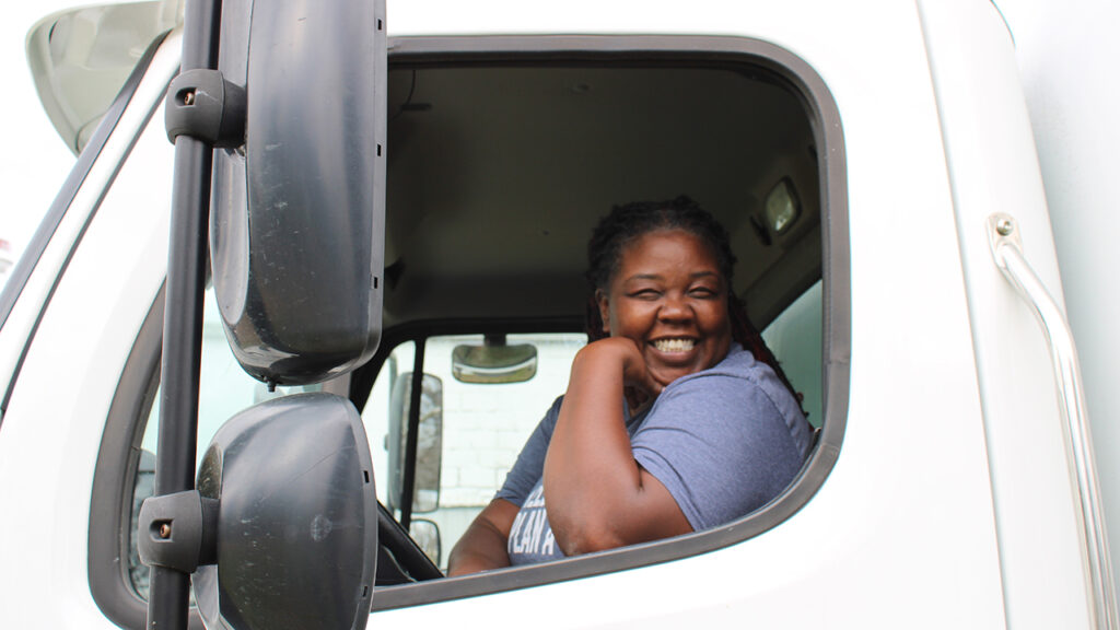 Antoinette Roby drives the mobile unit for Plan A Health (Olivia Lewis/Direct Relief)