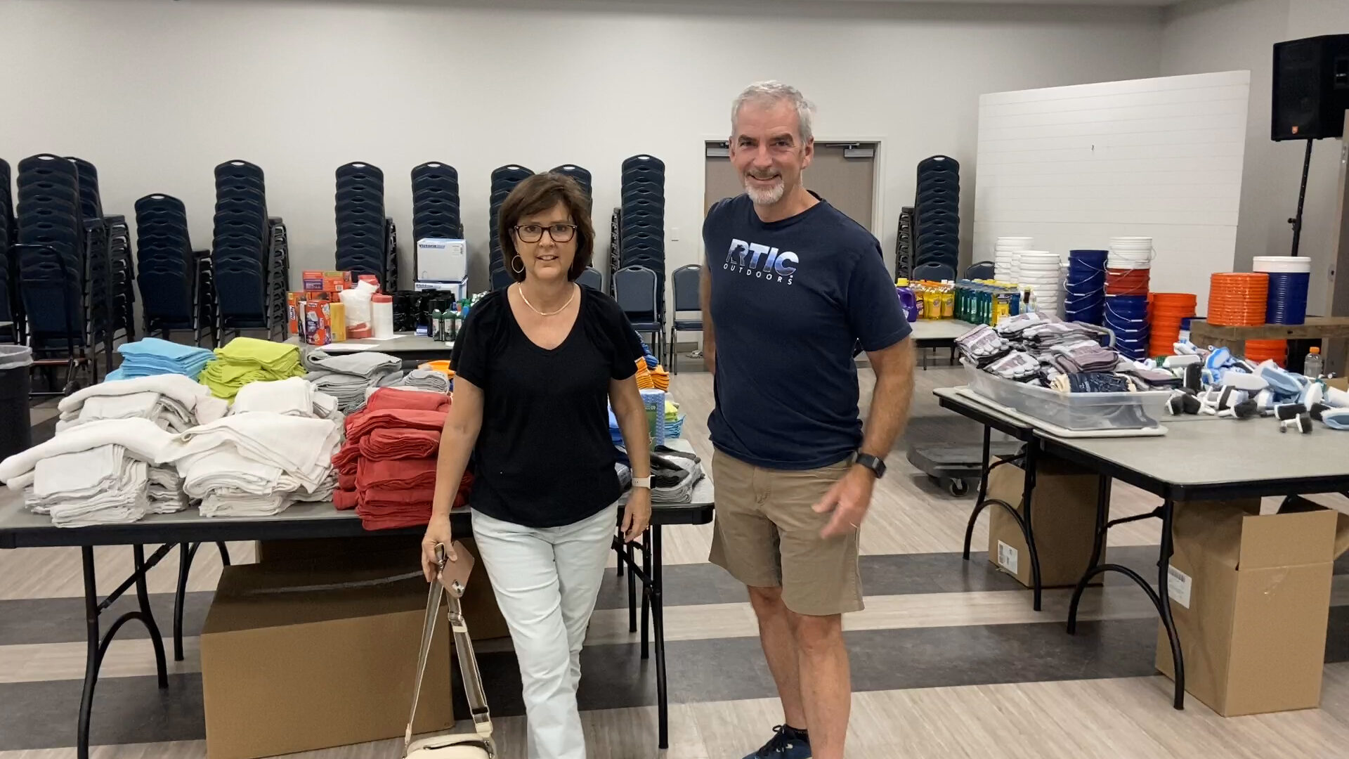 Associate Pastor Cathy Tucker and Pastor Jay Tucker in the aid distribution center that was set up in their church, Richmond Hill United Methodist following flooding in the wake of Hurricane Debby (Noah Smith/Direct Relief)