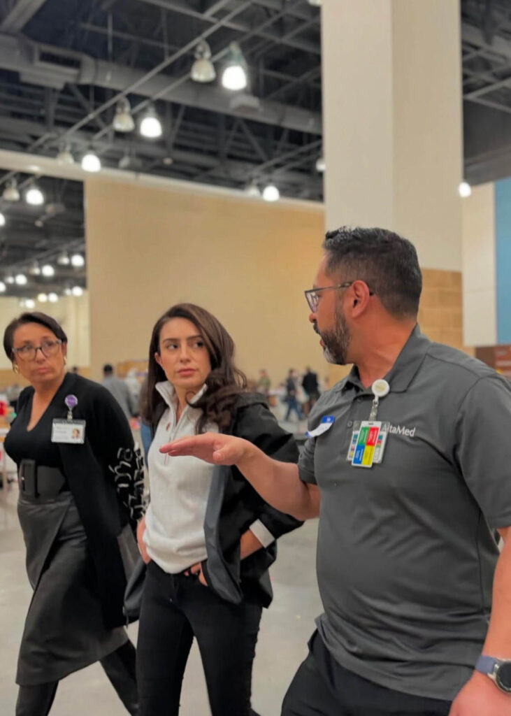 “There wasn’t any infrastructure in place,” he recalled. More than 550 people sheltering at the convention center, in five event halls converted to dormitories, needed medical assessments. People had fled too urgently to bring their medications, or they needed canes and walkers, or they needed more intensive care than AltaMed’s response team could provide in a shelter setting.