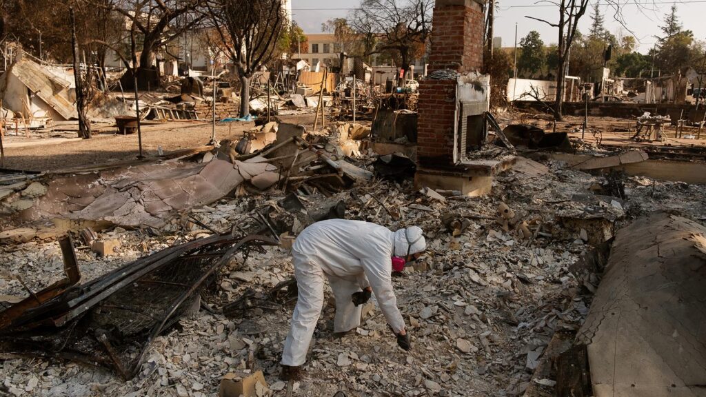 Direct Relief has been providing protective equipment, including gloves and coveralls, to people reentering neighborhoods damaged by the fires. (Photo by Mason Poole and Zack Hughes for Direct Relief)