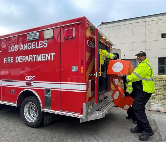Burn zone re-entry kits from Direct Relief were delivered to the Los Angeles Fire Department. (Photo: Annie Vu/Direct Relief)