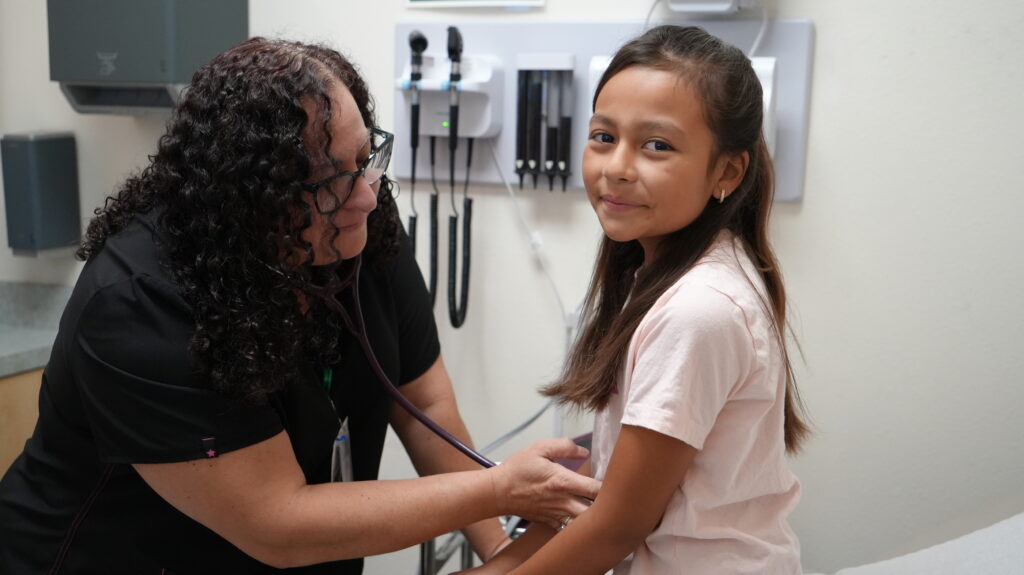 A provider at Clinica Sierra Vista, a community health center in Lebec, California, takes a patient’s vitals. (Direct Relief photo)
