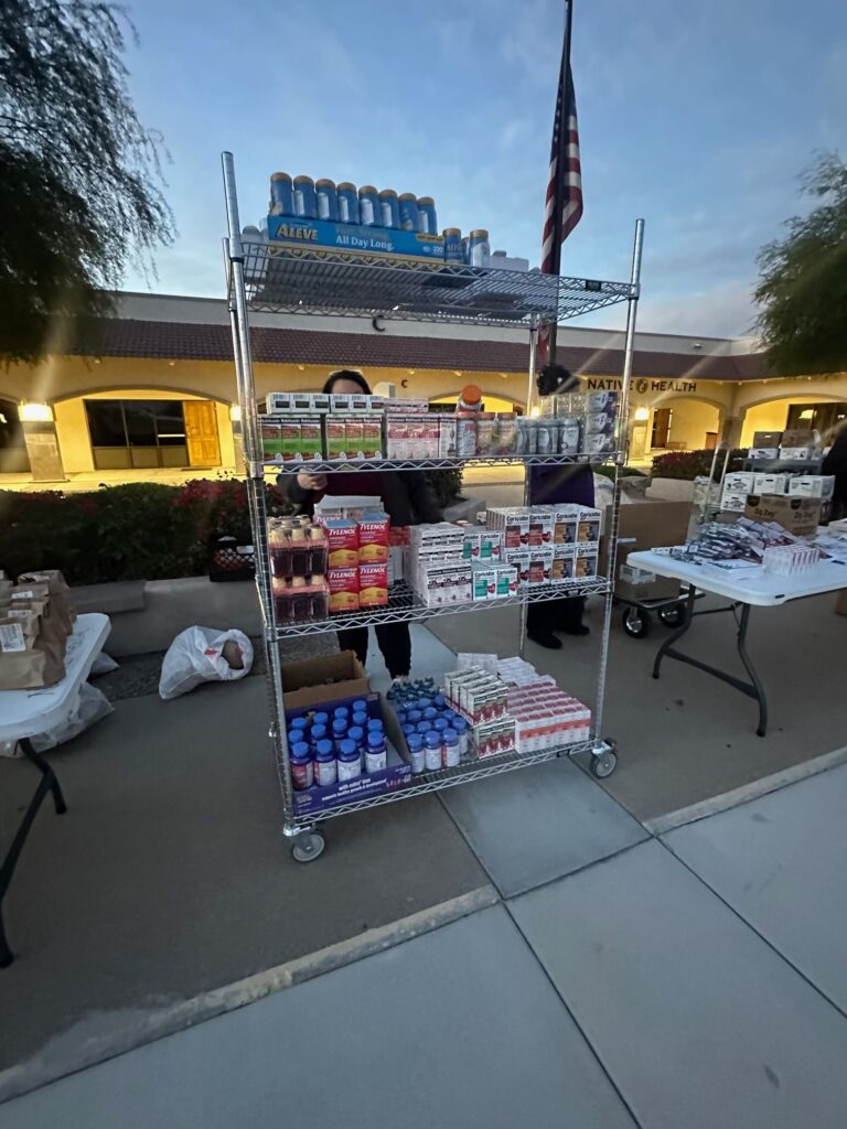 In addition to food provided by the community, Direct Relief supplied hundreds of bottles of over-the-counter medications — including pain relievers, cold and flu treatments, and daily wellness supplements — that were distributed to families alongside the holiday groceries. Direct Relief staff were also present during the event, supporting Native Health teams and helping hand out materials throughout the day.